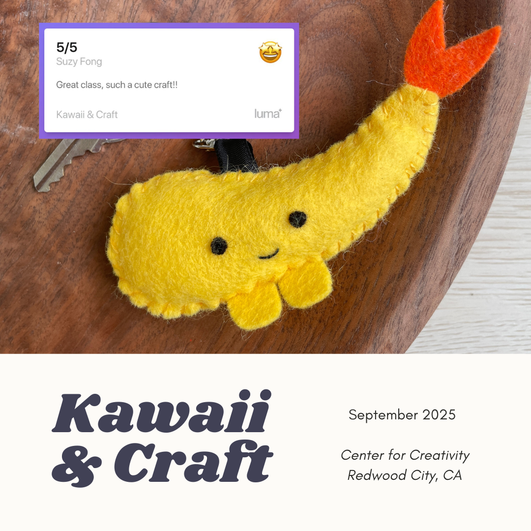 In this guided hand sewing workshop, students learned to sew their very own felt shrimp tempura keychain based on our popular DIY kit.